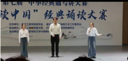 威廉体育williamhill战俞铭、刘迪、张煜菡三位同学组成的代表队表现尤为出色。他们朗诵的《沁园春》,不仅展现了扎实的语言功底,更通过富有感染力的情感表达和精湛的舞台表现,赢得了评委和观众的一致好评。最终,以优异表现摘得非专业组第一名。